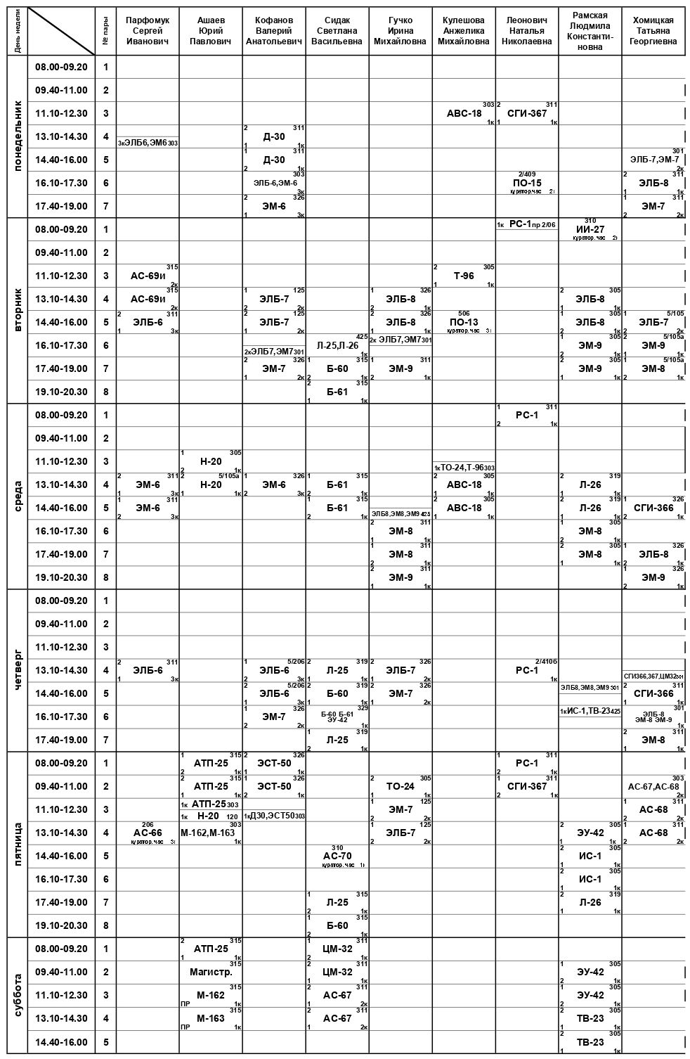 | Специальность | Дисциплина | Семестр 4 | Семестр 5 | Семестр 6 |